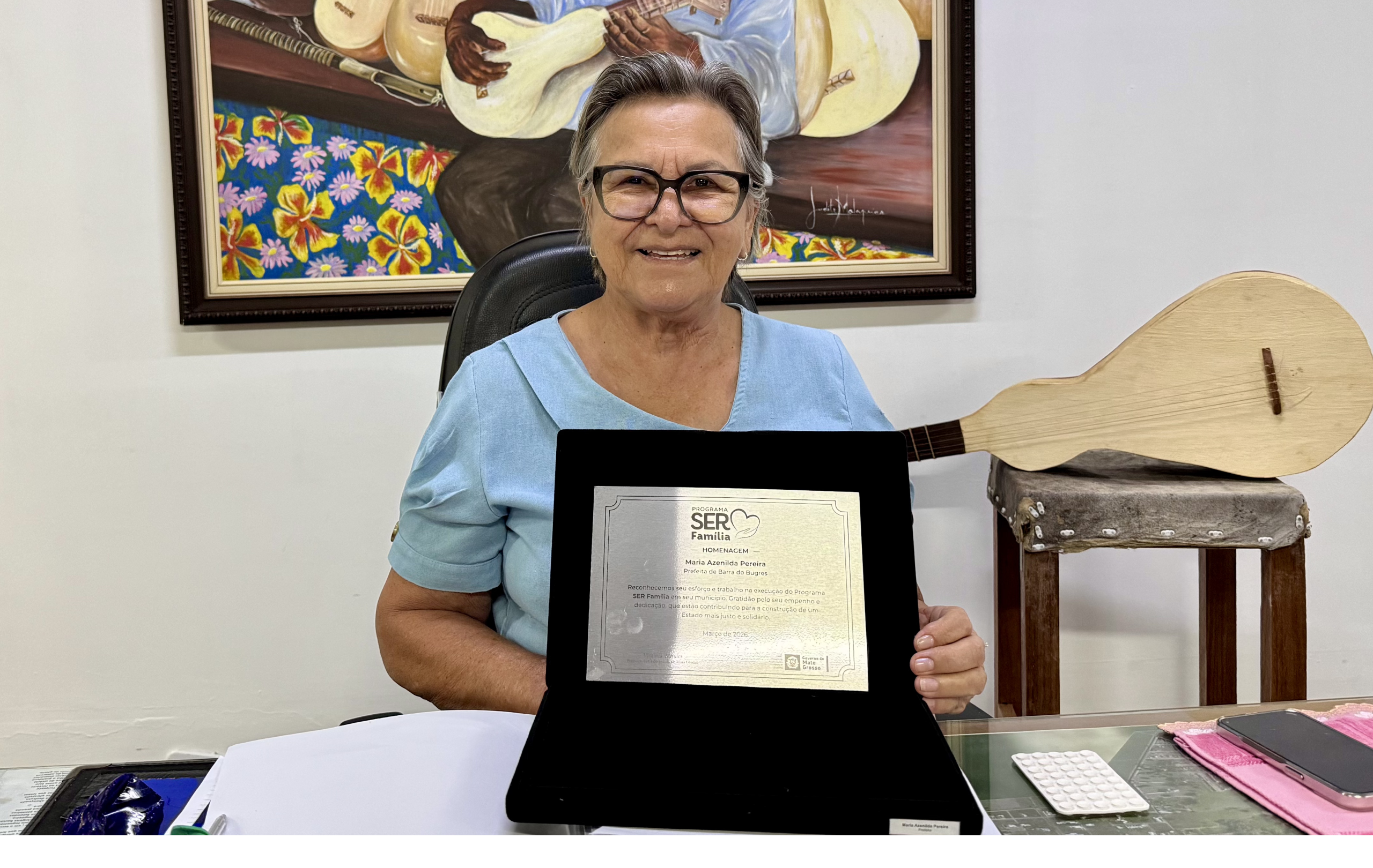 A prefeita de Barra do Bugres, Maria Azenilda Pereira, recebeu um reconhecimento oficial da primeira-dama de Mato Grosso, Virginia Mendes, em agradecimento ao empenho e à parceria na execução das políticas públicas de assistência social no município por meio do programa SER Família.